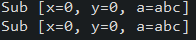 return "Sub [x=" + x + ", y=" + y + ", a=" + a + "]";
