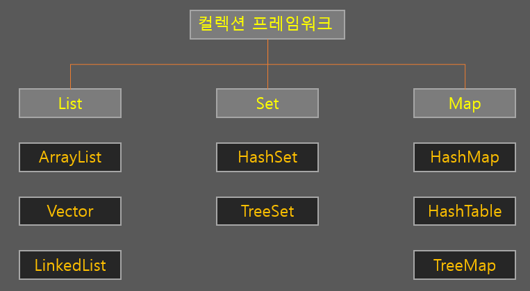 컬레션 프레임워크는 List, Set, Map 계열로 나뉘어집니다.
