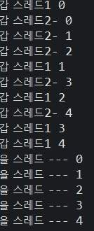 System.out.println("을 스레드 --- " + i);