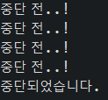 System.out.println("중단되었습니다.");