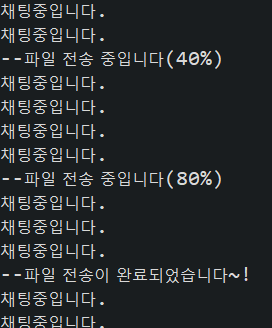 - 전송률이 40%, 80%일 때 채팅화면에 "파일 전송중입니다(xx%)" 라는 문구를 출력한다.