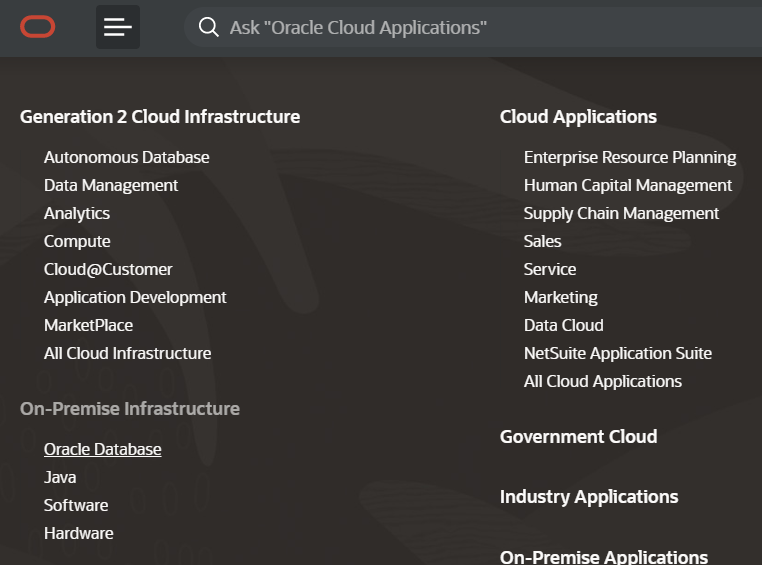 2. 좌측 상단 메뉴 누른 뒤 On-Premise의 Oracle Database 클릭