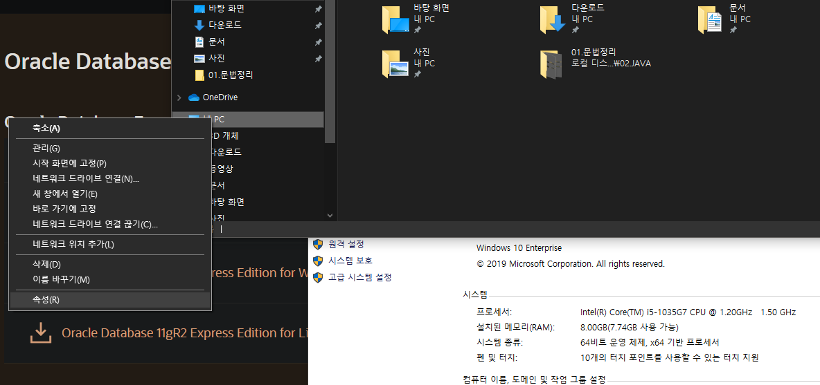 7. OS 비트(bit)는 "탐색기 - 내PC우클릭 - 속성" 에 가면 볼 수 있음
