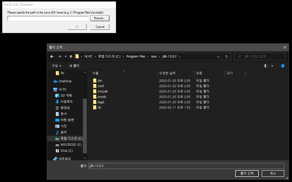 - 본인의 JDK가 있는 가장 상단폴더를 지정한 후 'OK' 버튼을 눌러 실행
