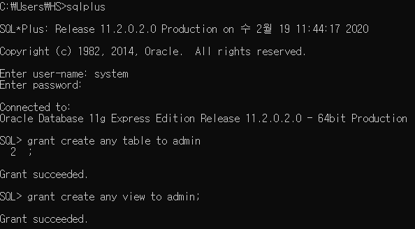 - GRANT CRETAE ANY TABLE TO '계정명'