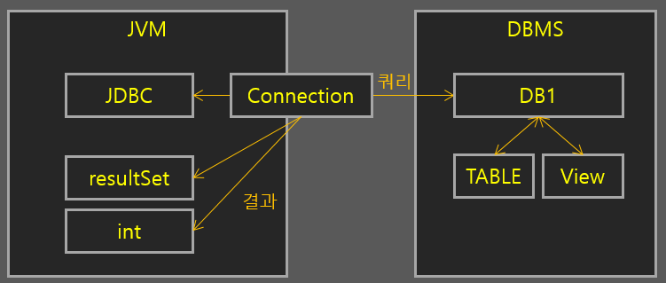 - 자바 프로그램 안에서 SQL을 실행하기 위해 데이터베이스를 연결해주는 기능