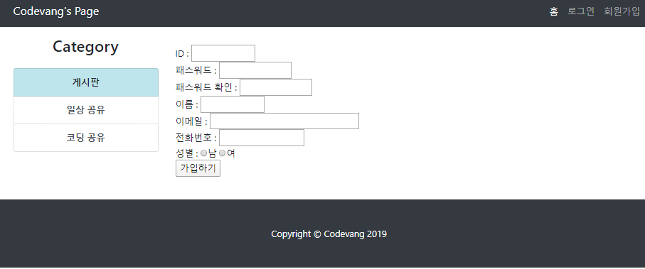 템플릿을 가져와서 복잡한 기능은 빼고 간단히 바꿔본 페이지입니다. 뼈대만 잡고 서버 기능구현을 하면서 조금씩 다듬어 나가면 될 것 같습니다.