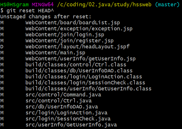 - git reset HEAD^^(가장 최신 커밋 2개 취소(삭제))