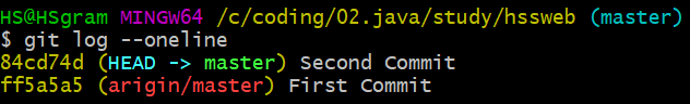 커밋 목록의 요약본을 확인해봅니다. 2개가 커밋돼 있습니다. 'Second Commit'은 뭔가 테스트해보기 위해 했던 커밋이라 굳이 놔둘 필요가 없어 지우겠습니다.