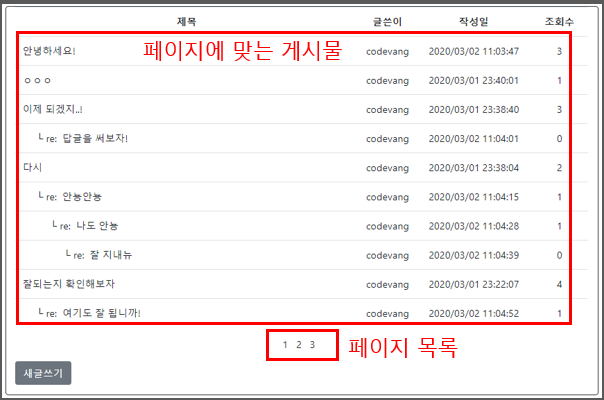 두 번 째는 페이지 번호를 눌렀을 때 해당 페이지에 속하는 게시물의 목록을 뽑아내는 것입니다. 이 부분은 DB단에서 쿼리를 통해 수행되며, 원리만 알면 역시 간단히 처리할 수 있습니다.