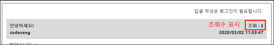 이제 해당 게시물에 대한 조회수를 하나 늘려줍니다. 조회수는 무조건 누른다고 늘지 않고 일정 기준으로 늘어납니다. 저 같은 경우는 같은 세션을 가진 사용자가 한 게시물을 여러 번 클릭하더라도 한 번 이상 조회수가 늘어나지 않게 설정했습니다.