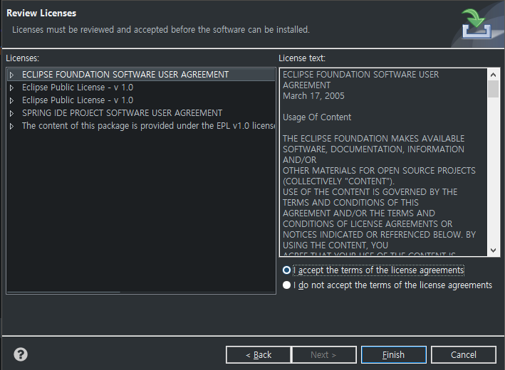 5. 라이선스 사용 동의 후 "Finish" 클릭