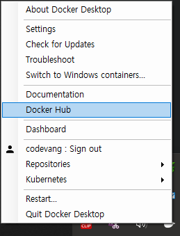 도커를 GUI 환경에서 사용할 수 있도록 도와주는 툴이 따로 있어서 원래 Kitematic 이라는 탭이 보여야 하는데 최신 버전에서 뭐가 바꼈는지 그 자리에 도커 허브라는 녀석이 자리잡고 있습니다. 깃허브 같은 역할로 이미지를 공유하는 곳인데, 그냥 사이트에 들어가보니 여러 가지 이미지를 찾아서 받을 수 있도록 되어 있습니다. 굳이 Kitematic을 찾아서 설치해야될까 싶어서 그냥 도커 허브를 써보기로 했습니다.