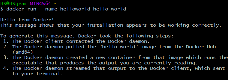 - docker run --name '컨테이너이름' '이미지 이름':태그 (컨테이너 이름을 직접 지정)