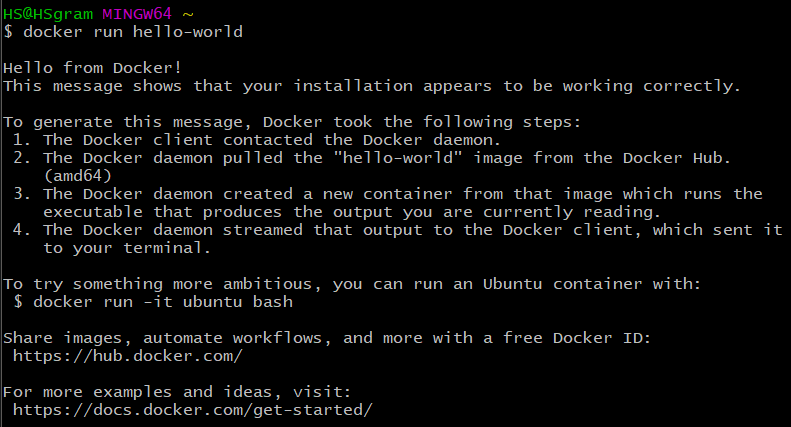 태그는 없으면 디폴트인 latest로 설정되고, 만약 로컬 저장소에 이미지 파일이 없으면 도커 허브에서 찾아서 pull 한 뒤 컨테이너를 생성 및 구동합니다.