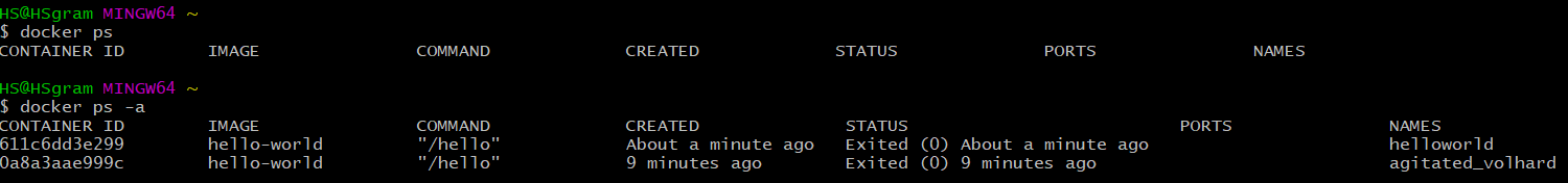 - docker ps -a : 모든 컨테이너 보기