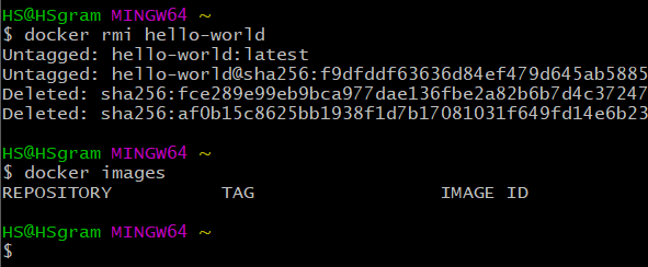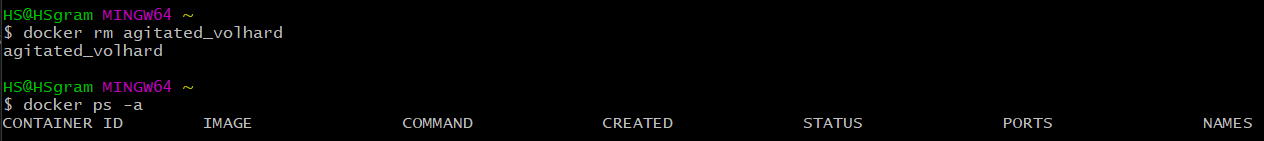 - docker rm '컨테이너 이름 또는 ID'