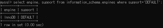 select engine, support from information_schema.engines where support='DEFAULT';