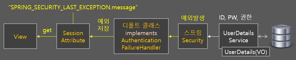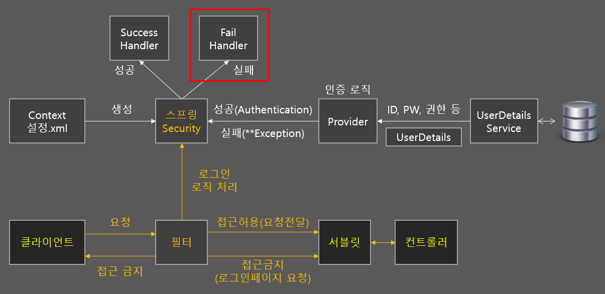 * 추가 설정 부여 : authentication-failure-handler-ref="핸들러 클래스의 Bean ID"