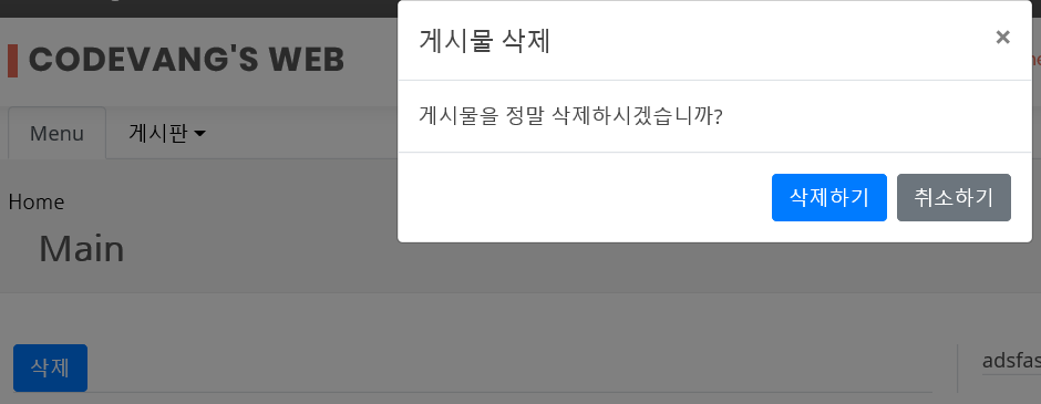 게시물을 삭제할 때 확인창을 띄운 뒤 확인 버튼을 누르면 Form 태그 안의 파라미터를 submit 하는 방법입니다. 좀 더 고급진 방법이 많겠지만 가장 간단한 방법으로 진행합니다.