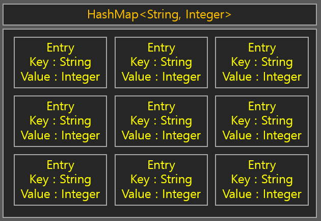 위 코드가 문제가 되는 이유는 해시맵의 구조를 보면 이해할 수 있습니다. 해시맵은 내부적으로 VO 객체와 같이 Key와 Value값을 저장하는 Entry라는 객체를 사용해 데이터를 저정합니다.