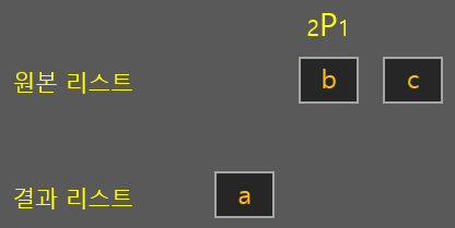 하나를 선택해서 빼둔 뒤 남은 원소들에서 이어서 뽑는 작업을 계속 반복한다고 생각하면 됩니다.
