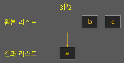 원리는 간단합니다. 3개의 원소 중 2개를 뽑는다고 가정하면, 1개의 원소를 뽑고나면 이제 나머지 2개 중 1개를 뽑기만 하면 됩니다.
