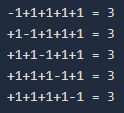 n개의 음이 아닌 정수가 있습니다. 이 수를 적절히 더하거나 빼서 타겟 넘버를 만들려고 합니다. 예를 들어 [1, 1, 1, 1, 1]로 숫자 3을 만들려면 다음 다섯 방법을 쓸 수 있습니다.