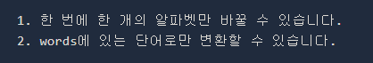 두 개의 단어 begin, target과 단어의 집합 words가 있습니다. 아래와 같은 규칙을 이용하여 begin에서 target으로 변환하는 가장 짧은 변환 과정을 찾으려고 합니다. ![]()
