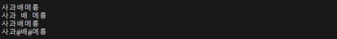 join() 함수를 사용해 문자열 사이에 값을 끼워넣을 수 있습니다. 리스트나 튜플 타입에도 적용이 가능한 함수입니다.