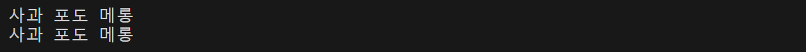 print(a, b, "메롱") # 디폴트 값 자동 공백 한 칸 지정