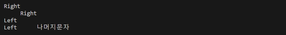 # 왼쪽 정렬 (10개 공간 중 왼쪽으로 정렬)
