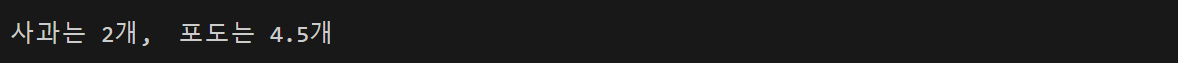 print("%s는 %s개, %s는 %s개" % (a, a_num, b, b_num))