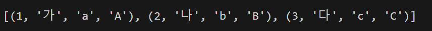 - 동일 갯수의 반복 가능 자료형을 묶어줌