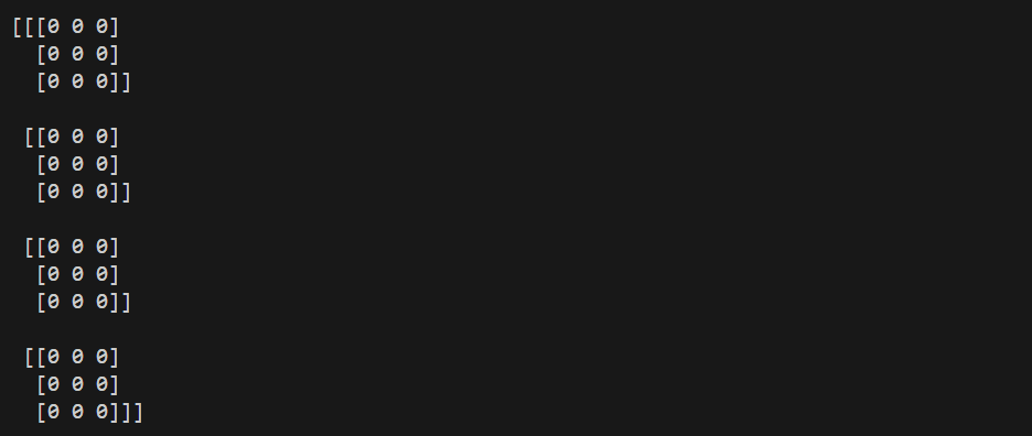 array = np.zeros((4, 3, 3), dtype="int64")