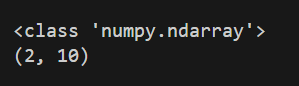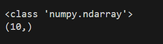 위 코드의 결과값을 확인해보면 오브젝트 클래스는 'numpy.ndarray'이며 10개로 이루어진 1차원 행렬이라는 것을 알 수 있습니다.