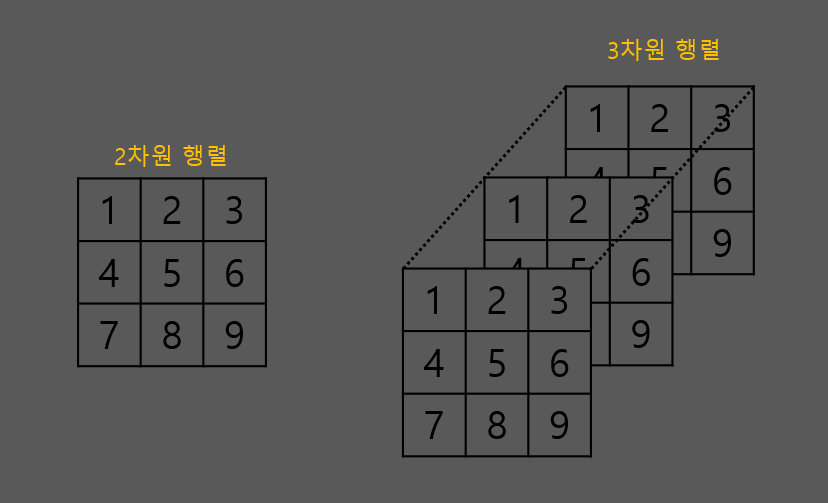다만 3차원 이상의 행렬로 넘어갈 경우 아래와 같이 사용해줘야합니다.
