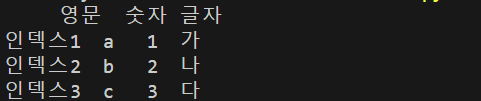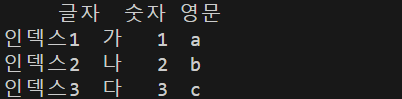 df = pd.DataFrame(dic, index = ["인덱스1", "인덱스2", "인덱스3"])