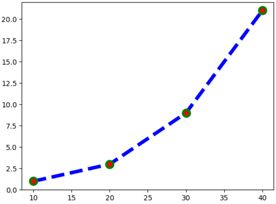 ax.plot(x, y, c="b", mec="g", mew=3, mfc="r",