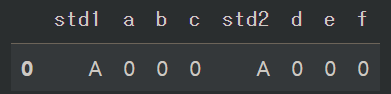 df1 = pd.DataFrame([["A",0,0,0],["B",0,0,0],["C",0,0,0]], columns = ["std1", "a", "b", "c"])