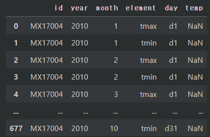 wheather2 = pd.melt(wheather, id_vars = ["id", "year", "month", "element"],