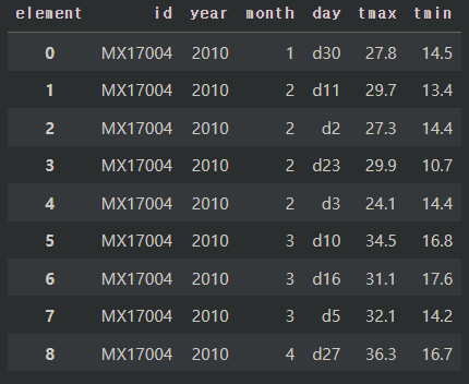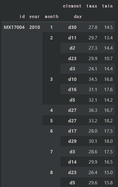 wheather3 = wheather2.pivot_table(index = ["id", "year", "month", "day", ],