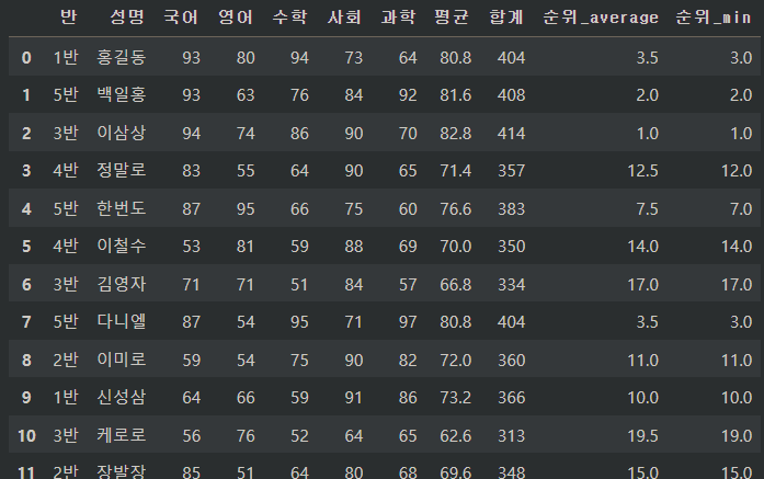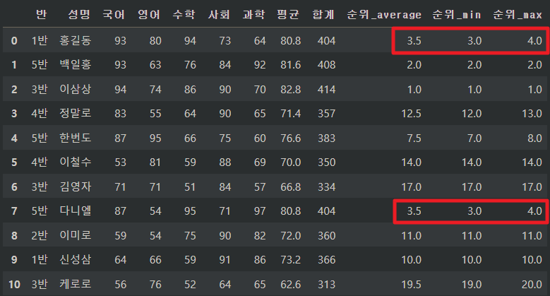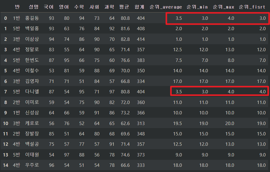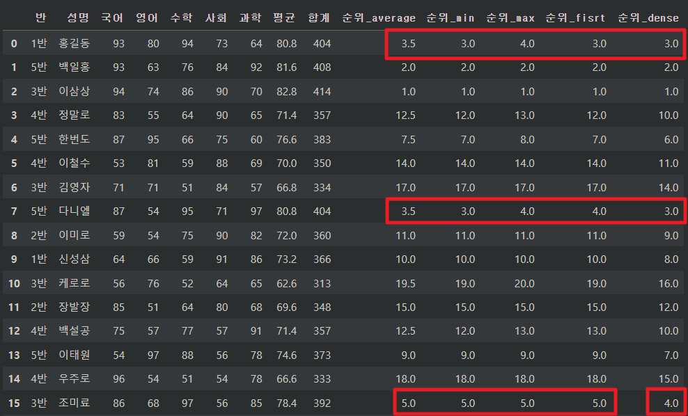 df["순위_dense"] = df["평균"].rank(method = "dense", ascending = False)