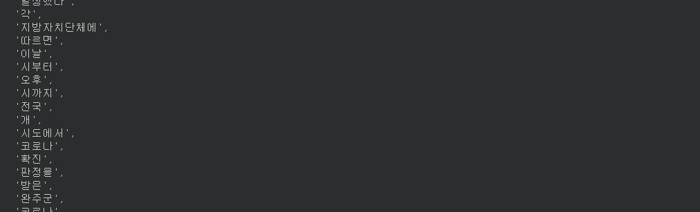 re.findall("[가-힣]+", covid)