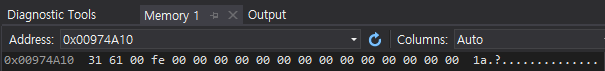 해당 메모리를 살펴보면 'fe' 라는 이상한 값이 추가돼있는걸 알 수 있습니다.