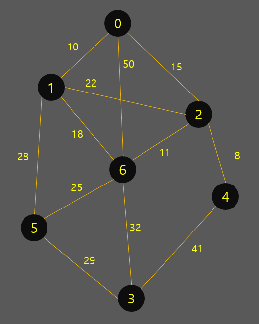 뭔가 했더니 도시 간 고속도로를 최단 거리로 잇기 위해서는 어떻게 할 것이냐하는 옛 퀴즈를 푸는 알고리즘입니다. 아래와 같이 각 도시 간 이어진 고속도로가 있고 최단거리로 모든 도시를 한바퀴 돌려면 어디서 출발해서 어느 길로 가야하는가를 푸는 문제라고 보면 되겠네요. 실전에서는 어디다가 쓰이는지는 감이 잘 안잡히지만 일단 한 번 풀어보겠습니다.