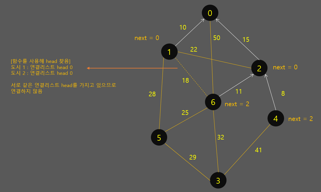 - 같은 연결 리스트에 속한 그룹(같은 head를 가진 그룹) 이라면 연결하지 않음