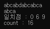 개념 이해가 잘 안돼서 한참 고민했습니다. 사전에 유의해야 할 사항은 만약 "ababab"라는 문자열에서 "abab"를 찾는다고 했을 때, 2개가 검색이 돼야 한다는 점입니다. 하나만 검색되면 틀린 로직입니다.