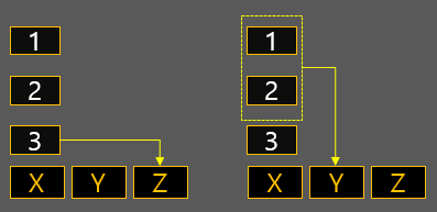 3은 그 위가 Y로 모두 이동하고 나면 Z로 가면 되니 없는 셈 치고 두 개짜리만 신경씁니다. 2개보다 더 많을 때는 손으로 그리기도 꽤 힘든데 2개만 있을 때는 아주 간단히 3단계면 이동이 가능합니다.