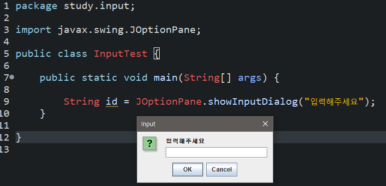 String id = JOptionPane.showInputDialog("입력해주세요");